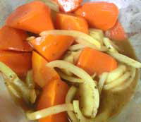 スープ部分を鍋に移して、中にあった野菜のアップ写真を撮りました。