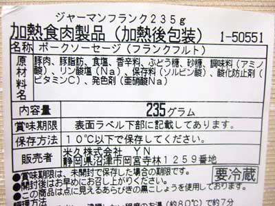 ■ジャーマンフランク@コストコの詳細