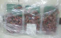 3パックで398円!安いですねえ。これ下さい、と係の人に伝えるとこういうビニール袋に入れてもらえます。写真、ぼけまくっていてスイマセン。
