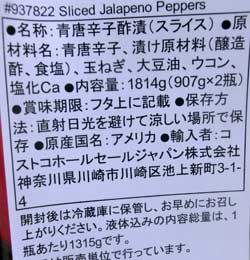 ・レシート表記:SLICED JALAPENO
