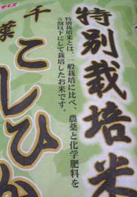 「特別栽培米とは、一般栽培に比べ、農薬と化学品を5割以下にして栽培したお米です」と書かれています。