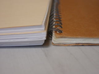 厚さはこのくらい。右は上記と同じように無印のリングノート(な・何でこんなボロボロなんでしょう・・)の3倍はあります。