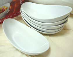 前からよく見かけるオーバルプレートです。6皿入り。前から欲しかったんですが、6皿入りで多くしー、持って買えるのも重いしー、と諦めていました。ただクーポンで安くなったので2011年2月に誘惑に負けて!?購入しました。