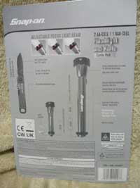 工具メーカーとして有名なSnap-onの商品です。フラッシュライトは、強固な分厚いアルミボディ仕上げで、焦点調節機能やプロテクトラバー付です。