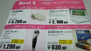 ★WEEK6 2008年11月10日(月)〜16日(日)のクーポン