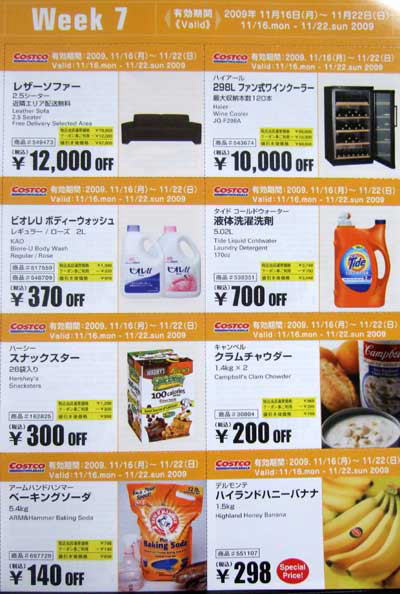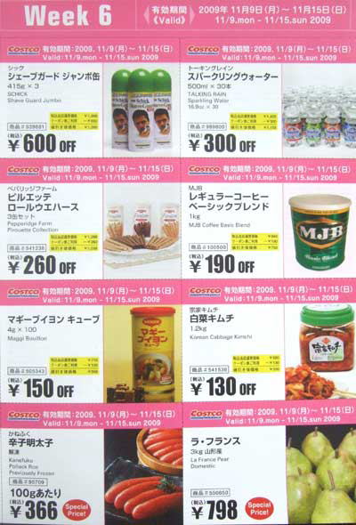 クーポンの有効期限は2009年10月3日(土)〜11月29日(日)、と表紙に記載されています。8週分のクーポンです。