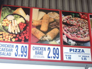 このあたりは一緒かな。チキンシーザーサラダやらチキンベイク、ピザ。