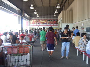 私が通っているコストコ尼崎店だと、フードコートはコストコ店内、レジを抜けたところにはあるんですが、ここでは店外、レジも抜けたところにあるので、誰でも来れますね〜