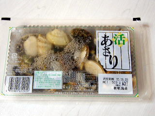 活あさりです。有明海産です。500グラムパック、398円(税別)でした。