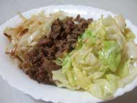 玉ねぎ、この肉、キャベツを炒めてみました。