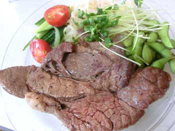 ガシガシ噛み切りながら食べる、安いアメリカ産牛肉w
