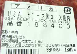 ・パッケージ表記:USAビーフ肩ロース焼肉(USA BEEF CHUCK YAKINIKU)