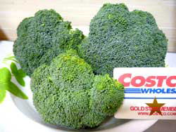 はい、今、野菜が高いです(2010年4月に書いています)。国産ブロッコリーが欲しかったんですが、今、1株250-350円くらいするもので(涙)。コストコでアメリカ産ブロッコリーを買ってみました。3株で258円。