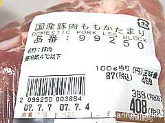 ■豚肉ももかたまり 100グラム当たり 87円 |