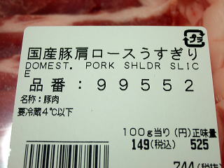 ■国産豚肩ロースうすぎり 100グラムあたり149円