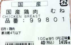 ・レシート表記:国産鶏むね肉 CHICKEN BREAST