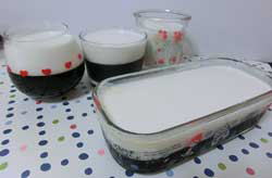 ゼリーとココナッツミルクの割合を大体半分づつとしましたが、