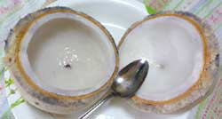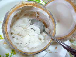 ココナッツの白い果肉(コブラ)を食べる
