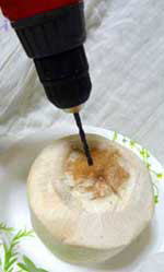 とりあえず穴だけあけて、飲んでみようと言うことで、電動ドリルがあったので、穴だけあけてみる・・