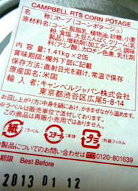 ・名称:コーンポタージュスープ CAMPBELL SUPER SWEET CORN POTAGE