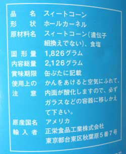 今回は大きな缶を買ってみました。固形量1826g、内容総量は2126g。コーンの缶としては、人生最大の大きさですw