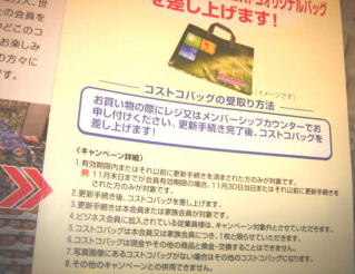 更新の際には、コストコバッグをもらえたよ、とのことでした。