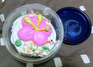 これジップロックコンテナーの丸い容器にちょーーーど入るんですよ。少しだけ周りのクリームがこぼれましたが・・ほんの少しです。中身も崩れないし、何せサイズがちょうどなのでスペースの無駄がないw