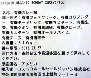 オーガニックで、ソルトフリーで、ボンベイスイートカレー、100パーセントナチュラルですって←パッケージそのまま読んでいるだけ