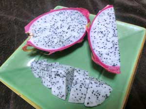 ドラゴンフルーツは最近普通のスーパーで見かけることがあるんですが、1つで600円くらい(数日前も見てきたんですがベトナム産だったり国産だったり)。