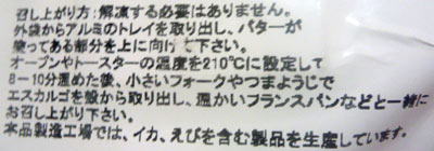 ・原材料名:エスカルゴ、バター、ガーリック、パセリ、食塩、赤とうがらし