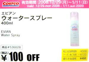 エビアンのウォータースプレーです。クーポンで安くなっていたのもあり、お試しで購入です。これを書いているのは2009年1月9日です。