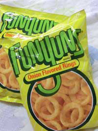 日本のスナック菓子でオニオン味のリング型のお菓子と違って固めです。