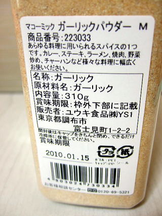 その時、使用されていたのはガーリックパウダー。なので欲しくなりました・・。ミーハー(笑)。