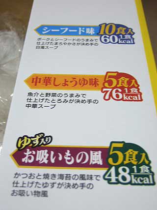・3種アソート(中華しょうゆ味、シーフード味、お吸い物風)
