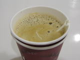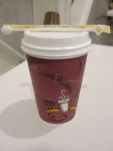 空けてみて分かったんですが、カップが2つ重ねてあります。熱さ対策でしょうね。考えてありますねえ。アメリカだとマクドナルドのコーヒーが熱過ぎて火傷した、ってことで裁判になってしまうくらいだから、こういうコーヒーも工夫されているのだろうかとふと思いましたがどうなんでしょう・・。