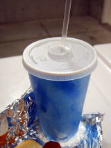 ・・フリードリンクってどういうこと?かと言うと、ファミレスのドリンクバーコーナー(ベンダー)のようなところがあり、そこで自由自在に飲み放題♪っていうことです。こんなカップを渡されます。