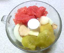 グレープフルーツ、キウイ、にんにく、しょうが、玉ねぎをフードプロセッサーですりつぶし〜