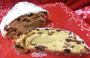 私のシュトーレンのイメージというと、表面が砂糖どっさり!中にはレーズンたっぷりという感じです。