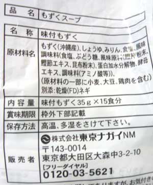 ・レシート表記:モズクスープ15フクロイリ