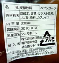 ・名称:炭酸飲料 ペプシコーラ