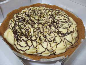 それからチョコレートクリーム。そしてバナナ味のクリーム。そして一番上にチョコレートソースです。