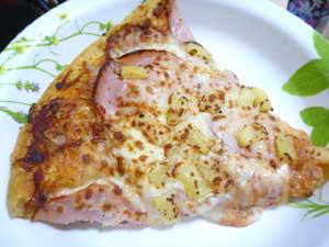 普通に美味しいです。ハムとパイナップルのピザ。それにチーズ。