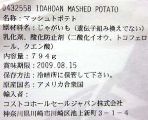 レシートやパッケージには「マッシュトポテト」と表記されています。