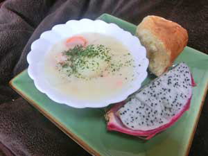 シチューに入れました。じゃがいもはメークインと違って溶けますが〜