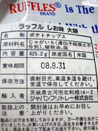 こういうチップス系の袋って中にガスを入れて中身が割れないようになっていますよねえ。なので余計に大きく見えたのかも。