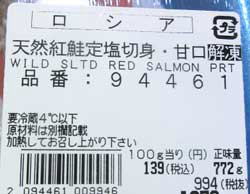 ・レシート表記:天然紅鮭定塩切身