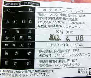 ・賞味期限:2013年2月8日(私の購入日から約ヶ月)※今回の私の購入分に関して