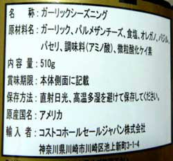 ・パッケージ記載:Johnny's Garlic Spread &Seasoning