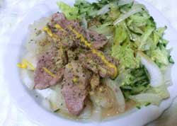 横のサラダにも生の新玉ねぎ入りです(玉ねぎ大好き)
