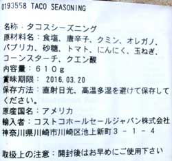 ・原材料名:食塩、唐辛子、クミン、オレガノ、パプリカ、砂糖、トマト、にんにく、玉ねぎ、コーンスターチ、クエン酸